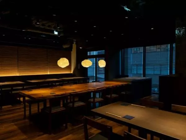 和モダンな印象の店内には、最大10名と6名の半個室、1名からでも利用できるコミュニケーションテーブルが配されています。開放的なテーブル席からゆったり会話を楽しめる個室まで、シーンに合わせて過ごせるのがポイント。鮮度にこだわった打ちたての二八蕎麦で、贅沢気分のランチタイムはいかがでしょう。