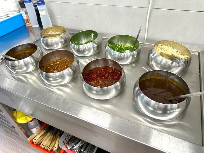 タレや薬味は入り口にあるカウンターから必要な分だけとってきます。肉の新鮮さが素晴らしく、中華風ダレでショウガを効かせて口に運ぶと、薄く切った牛肉の美味しさが改めて理解できるようです。
