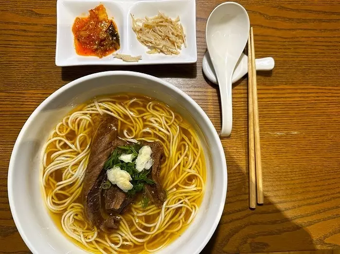 で、牛肉麺ですが、これがさすが素晴らしい。澄んだ美しいスープに細いめの麺がからみ、普洱茶で煮込んだという牛肉が柔らかく味わい深く、これもなかなか味わえないラーメンです。