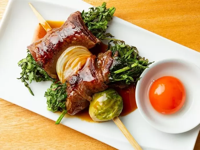 クレソンを黒毛和牛のヘレ肉で巻いた人気メニュー『すきやき侍』