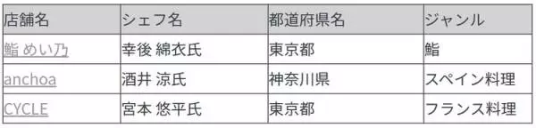 地方から都市部まで幅広く、42店舗が初受賞となりました。各地に才能あふれるシェフたちが存在し、その独自の料理によって注目を集め、票が広範囲に分散したことを示しています。これにより、全国のあらゆる地域のシェフたちの活躍に光が注がれていることが証明されました。
