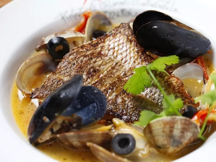 最小限の調味料で魚介の旨みを活かした『マダイと大粒アサリのアクアパッツァ』