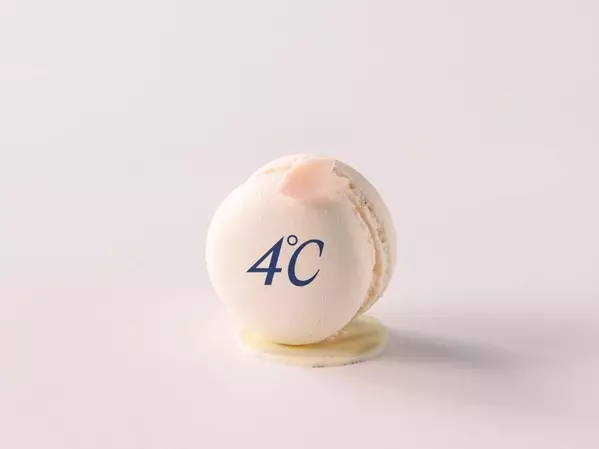 「4℃」の刻印も嬉しくなるマカロン。“桜の花びら”がオシャレです。桜風味のバタークリームをサンドし、さらにその中にはラズベリージャムのアクセントも