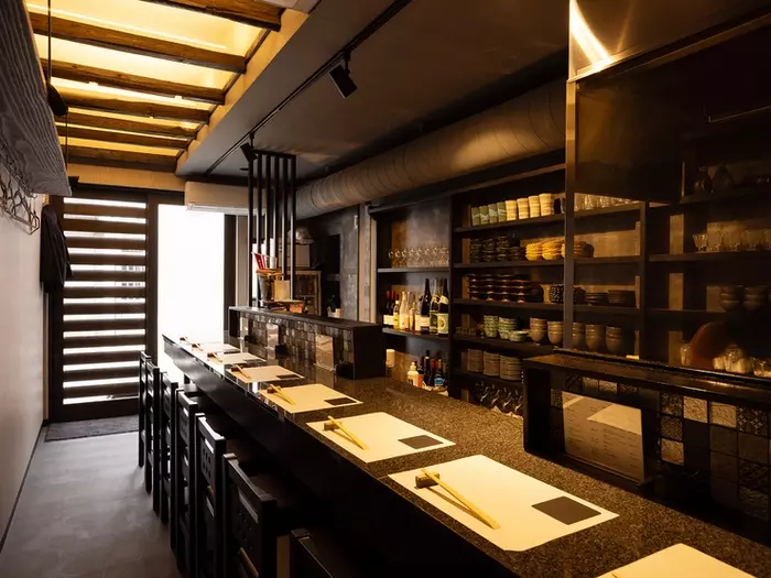 お店は広島中心部の繁華街・薬研堀に、ひっそりと佇んでいます。目印は小さな行灯のみで、知る人ぞ知る存在。店内はカウンター10席のみで、まさに隠れ家という風情です。薬研堀の喧噪を忘れる落ち着いた空間で、ゆっくりお酒と料理を堪能しましょう。瀬戸内の魚介や広島の地酒も味わえるので、観光客にもオススメの一軒です。