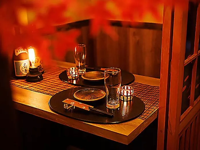 全室個室で柔らかい照明と上品なインテリアのオシャレな空間。扉付きの完全個室なので、周りの目を気にすることなく、ゆったりとくつろいで食事をすることができます。