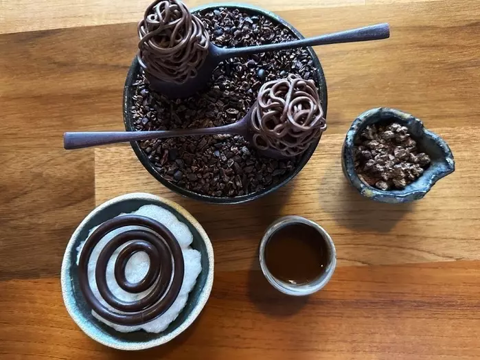 クスコのジャングルのカカオを使ったチョコ菓子が、こちらで開発した薬草酒「カケ」とともに出されました。ここではカカオの原種を守るため、100%原種のものが使われているのだとか。