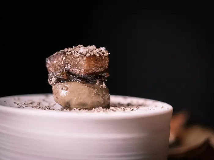 じゃが芋に玉ねぎのチャツネを合わせた『フォアグラとトリュフのジャーマンポテト風』