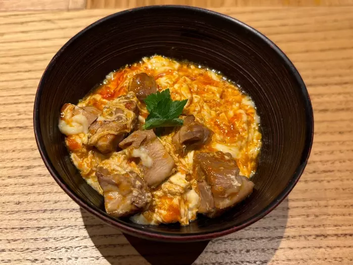 さらに、〆の一品としてオススメしたいのが、この『地鶏の親子丼』です。火入れを抑え、卵がゆるめに仕上げられており、絶妙にとろけた卵と柔らかくてジューシーな鶏肉は、お腹がいっぱいでもついつい食べてしまう“飲める親子丼”と言われています。コースには含まれていませんが、追加注文が可能なので、ぜひ食べてほしい一品です。