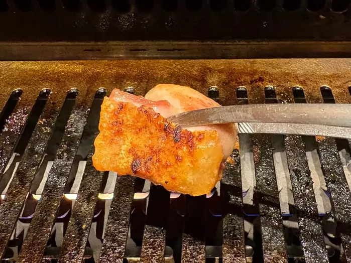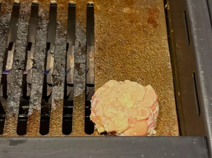 「燻製させた胸肉」と「すなずり」は約2分、それ以外の食材は約4分焼きます