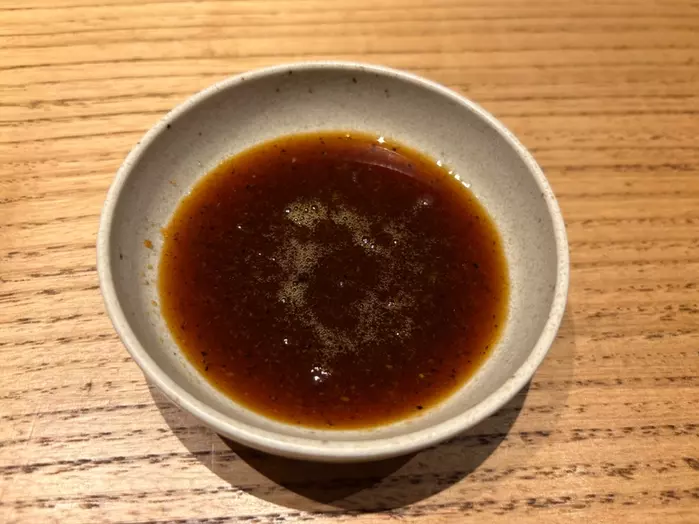「すなずり」はごま油で味付けされているため、ほんのりとしたごま油の風味が漂います。コリコリとした食感も魅力です。「すずなり」以外は「自家製醤油ダレ」につけていただきます。この「自家製醤油ダレ」はガツンと効いたニンニクが特徴で、どうしても淡白になりがちな鶏肉に良いアクセントを加えてくれます。中毒性のある味わいです。