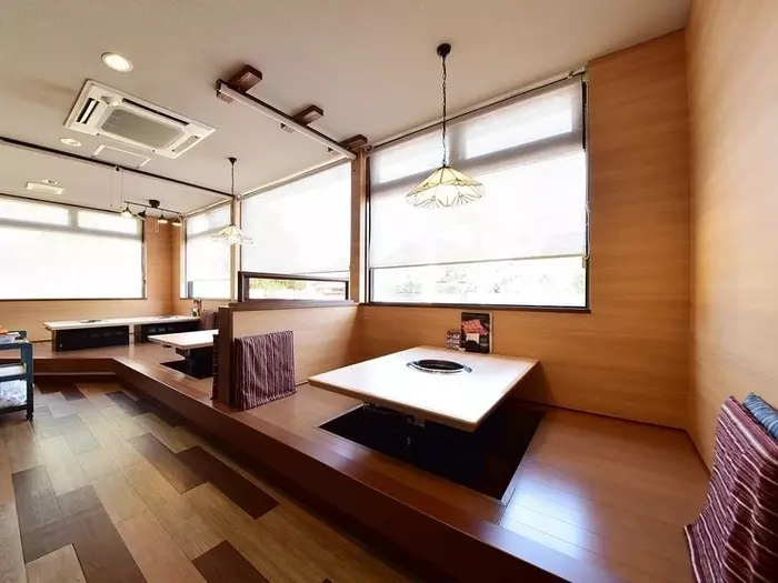 おいしさの秘密はタレにもあり、フルーツの甘みやニンニクのパンチが利いた伝統の味わいは評判です。充実した宴会コースやお得なセットには飲み放題を付けることも可能。店内はテーブル席を中心に、個室や小上がりの掘りごたつ席を完備し、60人まで収容できます。駐車場も15台分用意され、グループやファミリーなどでいつも賑わっています。