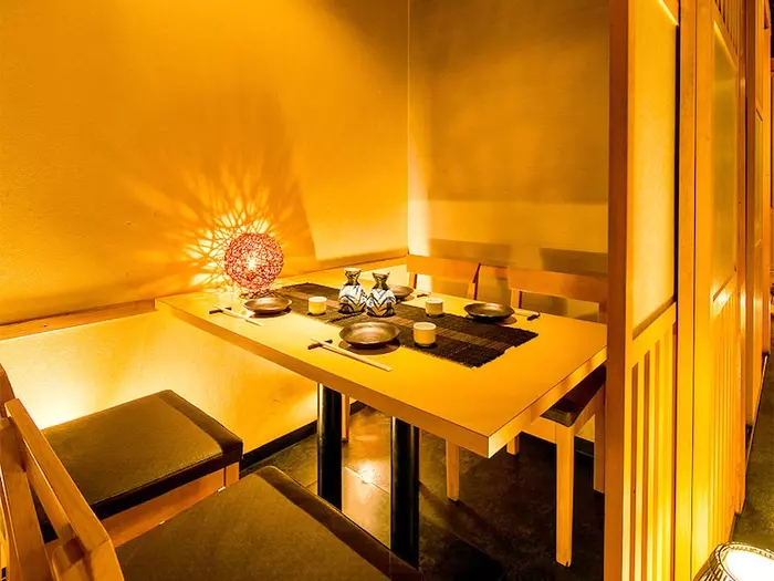 洗練されたインテリアで設えられた店内は、和を基調としたオシャレな空間になっています。全席が個室で、落ち着いた照明が心地良さを演出。周りに気兼ねせず、ゆったりとくつろげます。八条西口から信号を渡ってすぐという、立地の良さも魅力的。おいしい地酒を傾けながら、贅沢なひとときを楽しみましょう。