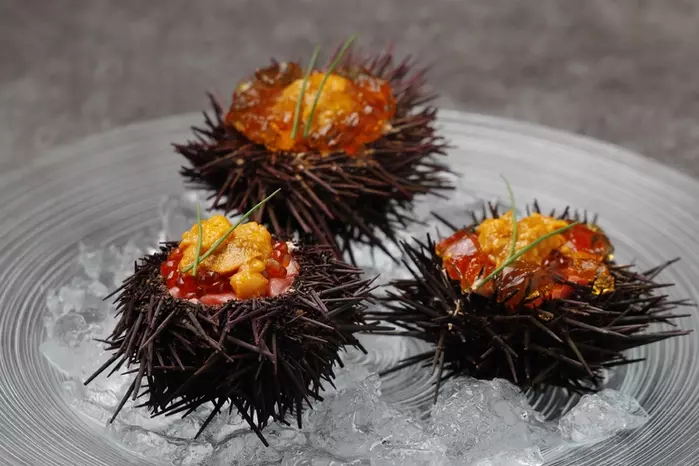 A5黒毛和牛と、雲丹の絶妙なマリアージュを楽しむことができる『A5黒毛和牛の『うにく』 ~いくら・コンソメジュレ~』