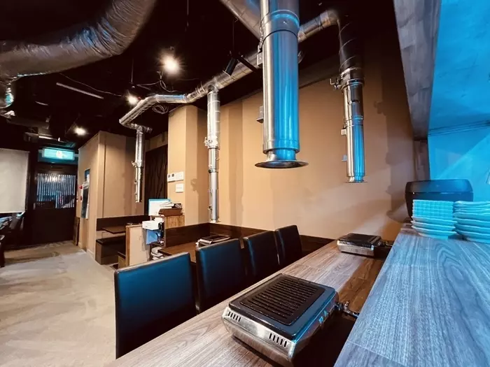 店内は、古き良き時代の趣を大切にしながら、モダンさも感じるオシャレな空間。女性同士や子ども連れでも気兼ねなく立ち寄れ、リラックスして過ごせます。お店のイメージにマッチした昔ながらのロースターで肉を焼くのがこだわり。肉が焦げにくく、余分な脂を落としてくれるため、肉の旨みを存分に堪能することができます。