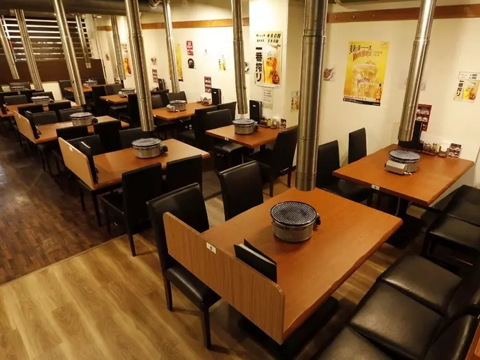 ゆったり座れて、くつろぎながら焼肉が楽しめる、広々とした開放的な店内。2人席や4人席、6人席まで全56席が用意されていて、カップルから家族、グループ、もちろん一人でも利用しやすくなっています。午前11時から夜まで通し営業しているので、どの時間帯にも利用可能、金曜・土曜は深夜3時30分までオープンしているのも心強い一軒です。