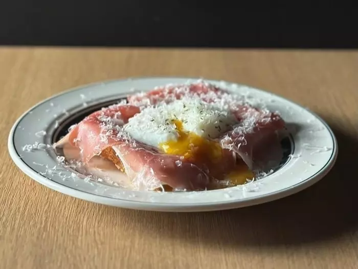 天満駅から徒歩3分の【end roll 天満】は、丁寧で繊細な料理が味わえるイタリアンレストラン。オススメは、薄くスライスしたパンでモッツァレラを包んだカロッツァをアレンジした『生ハムモッツアレラのカロッツァ』。とろけ出すモッツァレラと生ハム、温泉玉子、たっぷりかけたペコリーノチーズのハーモニーがたまりません。