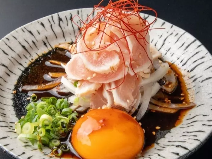 太宰府市にある【焼鳥・もつ鍋しょうき太宰府店】は、福岡で展開する【大衆居食屋しょうき】の姉妹店。香ばしく焼き上げた『焼鳥』や、2種のスープが選べる『もつ鍋』が味わえる居酒屋です。鹿児島から届く鶏「味なとり」を使用した『知覧直送!柔らかユッケ』は、ぜひ味わいたい一品。しっとりした舌触りと鶏の風味が楽しめます。