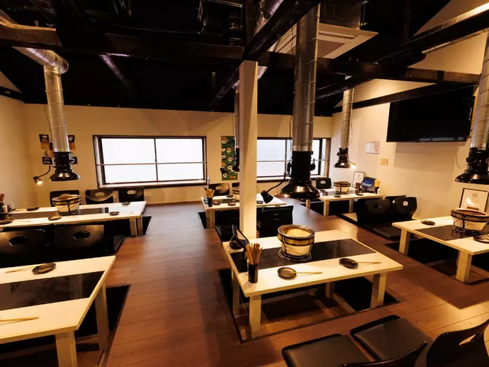 店内はカジュアルな雰囲気で、肩肘張らずに焼肉が味わえます。1階にはキッチンが眺められるカウンター席があり、ライブ感が楽しめます。2階は広々とした掘りごたつ式の座敷になっていて、足を伸ばしてくつろげます。鹿児島産の焼酎や、全国の銘柄が味わえるワンカップ日本酒など酒類も豊富で、飲んで食べる気軽なデートが楽しめます。