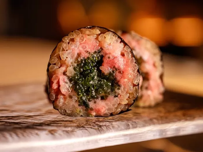 提供されるのは、一口ごとに驚きと感動が広がるイノベーティブな料理。鮨職人・大谷氏の技と美意識、そして選りすぐりの食材が織りなす20品以上のフルコースでは、鮨とともに一品料理も楽しめます。時には、シャリを使ったパエリアといった、思いも寄らない一皿が登場することも。
