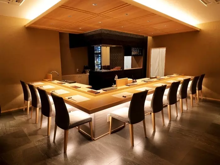 威厳さえ感じさせる暖簾をくぐり、店内に足を踏み入れると、カウンター席をメインに据えた上質で美しい空間が広がっています。プライベート空間で憩いたい人のために、落ち着きのある完全個室も2室完備。愛知の逸品食材や全国の旬の幸を活かした本物の美味を満喫でき、大切なゲストをもてなす場としても理想的な一軒です。
