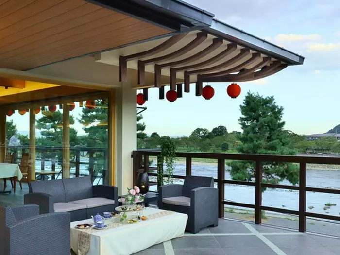 嵐山の四季折々の風景を眺めながら食事をいただく