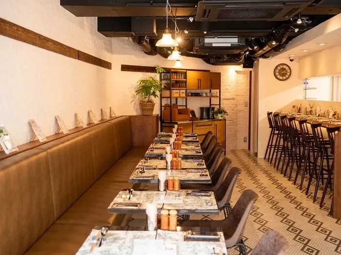 花を咲かせる樹木をコンセプトに、長く愛されるお店づくりを目指している【花樹Tokyo】。厳選された19種類のスパイスを使用し、低温で自家焙煎したスープカレーは、健康とおいしさの両立を追求した逸品です。店内は白を基調とした高級感漂うダイニング。温かみのある照明とゆったりとしたBGMが、リラックスできる雰囲気を演出しています。
