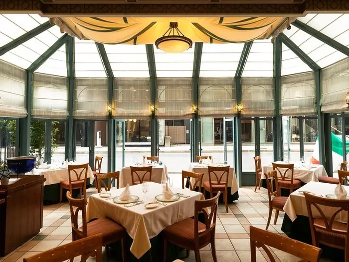 銀座一丁目駅より徒歩1分、女性デザイナーが設計した「ホテル モントレ ラ・スール ギンザ」の1階にあるイタリアン。パリのアパルトマンをイメージした建物はクリーム色と淡いミントグリーンを基調とした可愛らしい雰囲気で、日本にいながらヨーロッパ気分を味わうことができます。