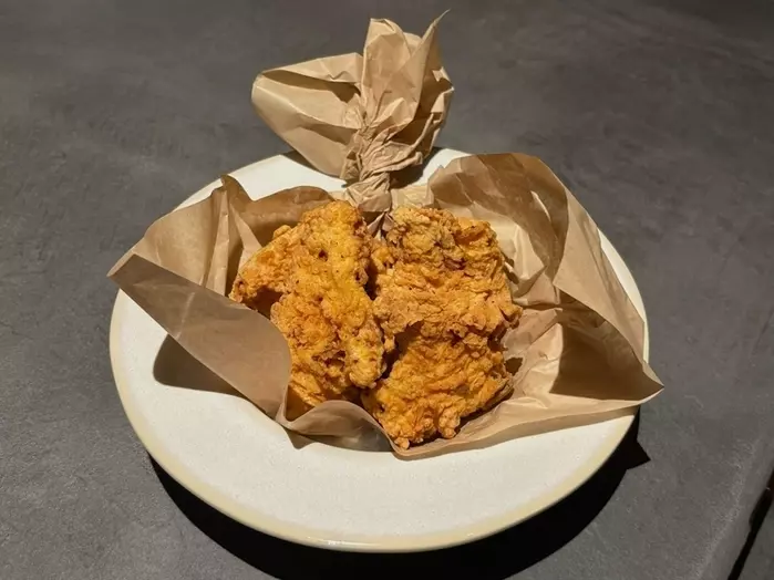その他、メキシカンな『チキンエンチラーダ』(1,680円)や『白胡麻ぺースト』(=タヒニ)でつくるドレッシングも美味な『手羽中のタヒニシーザーサラダ』(1,380円)など、ユニークな鶏メニューがずらり。中でも、武田料理長のオススメは『バターミルクフライドチキン』(1,380円)。柔らかな若鶏の胸肉を使っているそうで、香ばしくもサクサクに上がった衣とジューシーな肉との食感の対比に頬が緩む。武田料理長によれば「バターミルクに漬けることで、その穏やかな酸味が肉の繊維を壊すことなく柔らかくしてくれる。」そうで、しっとりとソフトな味わいを楽しませてくれる。