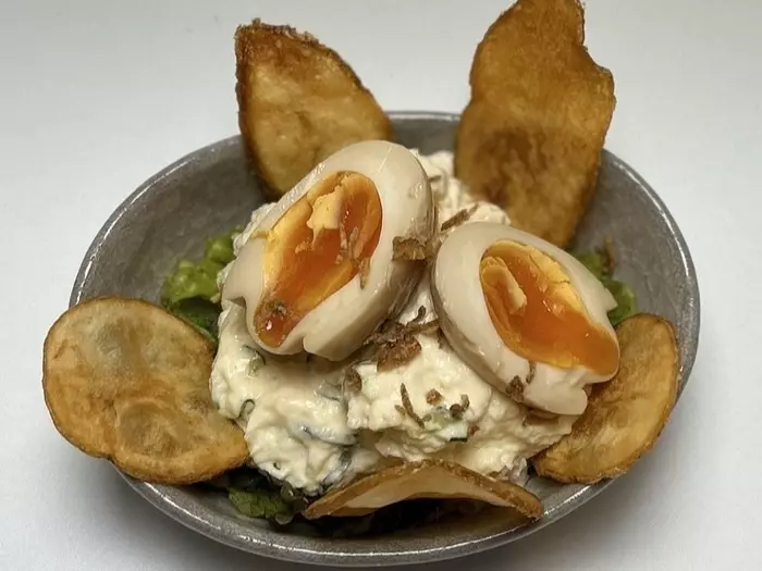 『Yoinoma特製ポテトサラダ(自家製味玉付)』はスパイシーな大人味