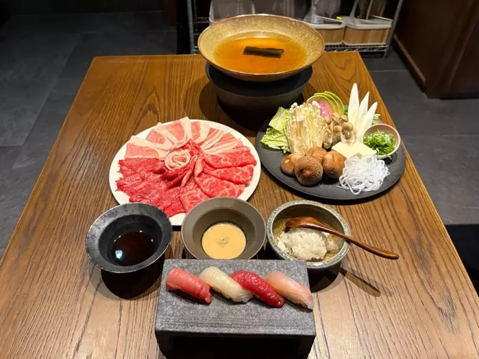 ランチ「黒毛和牛&茨城県産豚肉しゃぶしゃぶ×寿司」5,940円