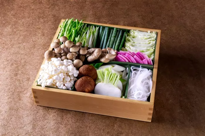 しゃぶしゃぶとともに提供される「新鮮野菜の盛り合わせ」