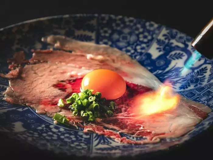 和牛の旨みと甘みがたまらない『名物至福の炙りユッケ』