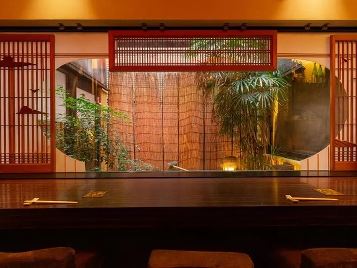 和モダンな店内にはジャズが流れ、まるで隠れ家のような落ち着いた雰囲気に包まれています。キッチンに面したカウンター席は間近に調理風景が眺められ、中庭を眺めながら食事ができるカウンター個室もあり、大人のデートにオススメです。しっとり一献傾けつつ、くつろぎのひとときが過ごせます。