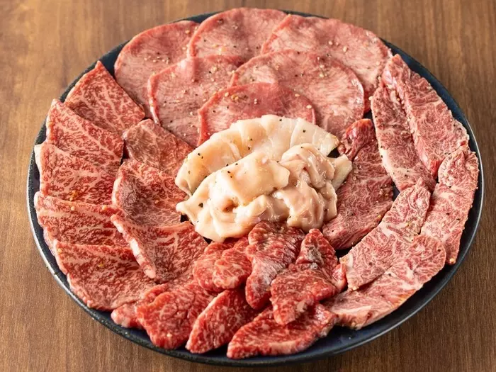 黒毛和牛A5ランクを中心とした上質な和牛を堪能できるのが、関内駅から徒歩3分の【李昇馬車道店】。飼育法や飼料にも目を向け、確かな目利きで仕入れた肉は格別のおいしさ。一番人気の『李昇盛り』をはじめ、噛むほどに旨みが広がる『特選ハラミ』、お店自慢の『名物塩ホルモン』など、ぜひ味わってみたいメニューがそろいます。