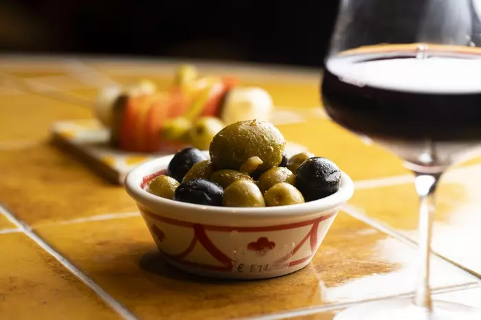 自家製マリネオリーブの盛り合わせや、イワシの酢漬けとアンチョビを合わせた『マトリモニオ』、ピクルスとオリーブを串にしたバスク地方の定番『ヒルダ』、スペイン産チーズの盛り合わせ、そして濃厚な味わいと華やかな彩りが楽しめる『Osmic カラフルトマトサラダ』など、素材の個性を引き立てた多彩な小皿料理がラインアップしています。