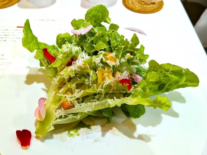 目に途端に、わぁと声が漏れてしまった華やかな一皿。「イタリアの晴れた日、テラスで気軽に楽しむカジュアルランチの光景」「最初のひと皿から、この世界観に誘い込みたい」というシェフの言葉通り、あっという間にその世界に惹きこまれていきます
