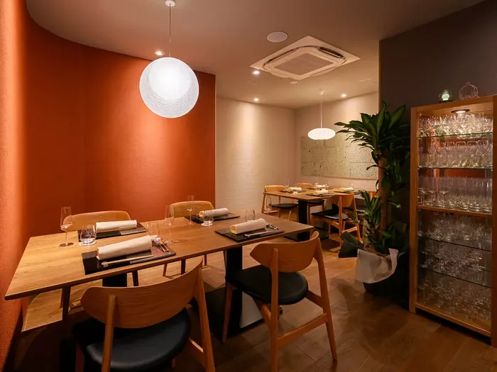 町田駅から徒歩3分の場所にある【restaurant Kyou 響】は、フレンチを軸に和の趣向を加えた料理がいただけるレストラン。2025年春に誕生した注目店で、自然体で楽しめる居心地の良さを追求しています。店内は、天然木や大谷石など自然素材に包まれた和モダンな空間。記念日やデートなどで利用したい、隠れ家風のシャレた佇まいも素敵です。