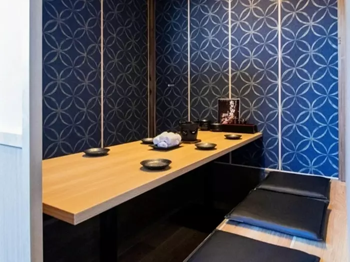 ブルーの壁がオシャレな雰囲気の個室