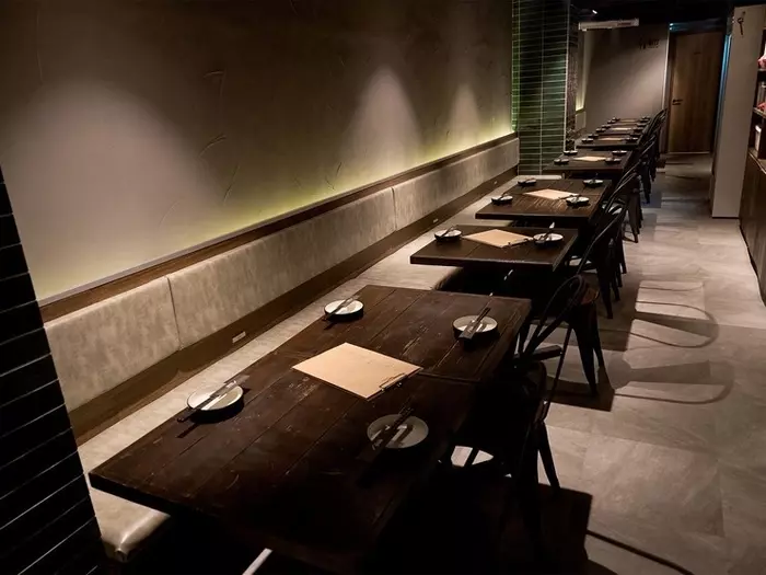 馬喰横山駅から徒歩5分のオフィスビルの1Fに店を構える、韓国料理店【バンジハ】。コンクリート×グリーン×木がコンセプトの空間はモダンで、まるでカフェのようなオシャレさ。店内には、ハイスツールを配したカウンター席も設けられています。シェフを含めスタッフ全員が韓国人というこちらのお店。本場さながらの雰囲気に包まれながら、本格韓国料理を堪能できます。