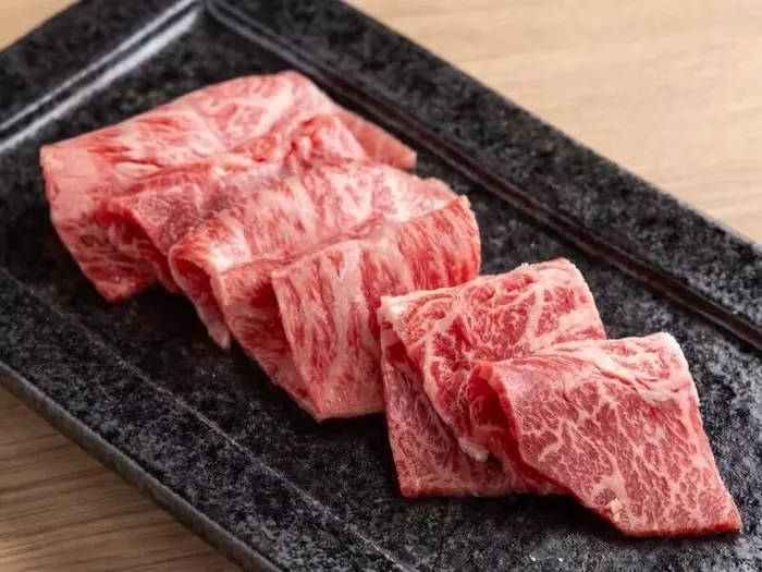 西鉄バス 長住3丁目バス停から徒歩1分の場所に店を構える【肉処泰山】は、家族連れなど幅広い世代で、リーズナブルに上質な焼肉が堪能できるお店です。メインとなる肉や野菜などの食材は、常に良質な国産ものをセレクト。赤身とサシの絶妙なバランスが楽しめる『特選ロース』をはじめ、フィレとバラの旨みを兼ね備えた『カイノミ』といった希少部位も味わえます。