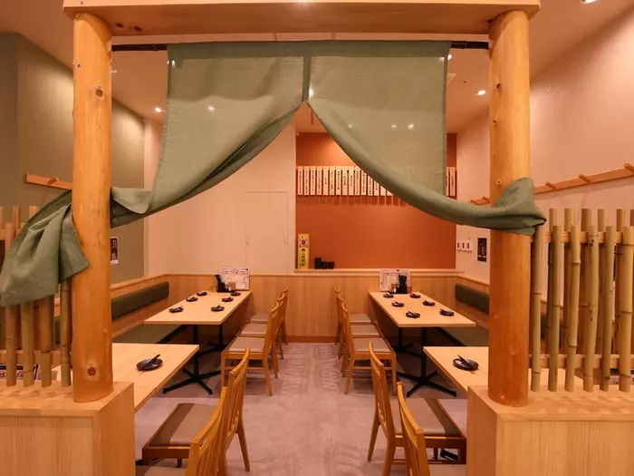 お店は駅前のショッピングセンター内にあり、老若男女を問わず、幅広い年代の人が訪れます。竹をふんだんに使った店内は、和やかで居心地が良い雰囲気。テーブル席のほか、カウンター席もあり、カジュアルなデートにオススメです。ビールやハイボールなど鳥料理と相性の良いお酒も豊富で、飲み放題のプランもあります。