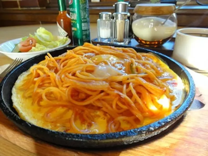 朝8時から11時までモーニングサービスを提供。パン、サンドイッチ、おにぎり、カレーなど8種類のセット(500円~)や、キッズモーニングも用意しています。ランチはミニハンバーグ、から揚げ、ミニグラタンがついた『レディースランチ』や、焼肉、魚フライ、ミニグラタンがつく『ダンディランチ』など、これまた多彩。鉄板に溶き卵を流してナポリタンをのせた『スペシャルスパ』も人気メニューです。