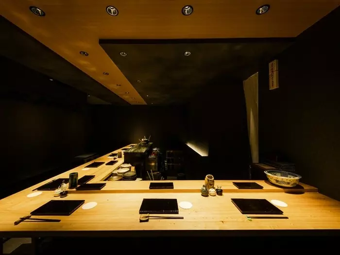 国内外から注目されている虎ノ門ヒルズから程近い場所にある、新築ビルの1階。シックな黒の外観の店を入ると、天然木のカウンターとグレーを基調としたスタイリッシュな空間が広がります。笑顔で迎えてくれる中村氏の温かな気配りとサービスで、くつろぎの時間が過ごせます。