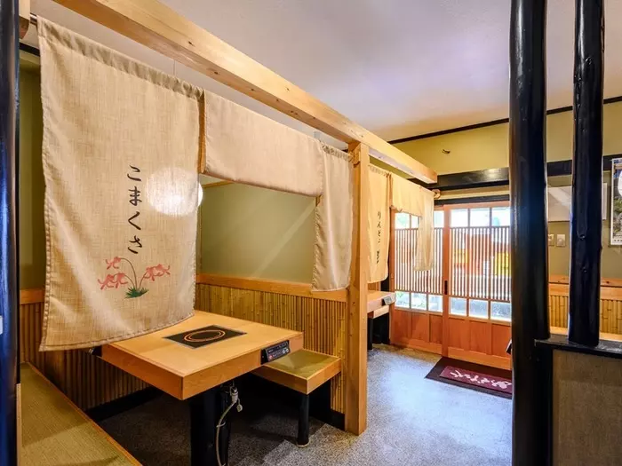 お店全体が、温泉宿を思わせるつくりになっているのが特徴的。2フロアからなる店内の1Fは半個室、2Fは全席完全個室となっており、周りを気にせず落ち着いて食事を楽しめます。また、お酒も、群馬県からオススメの地酒を数種セレクト。都内にいながらにして、まるで草津旅行をしている気分を味わえるお店です。