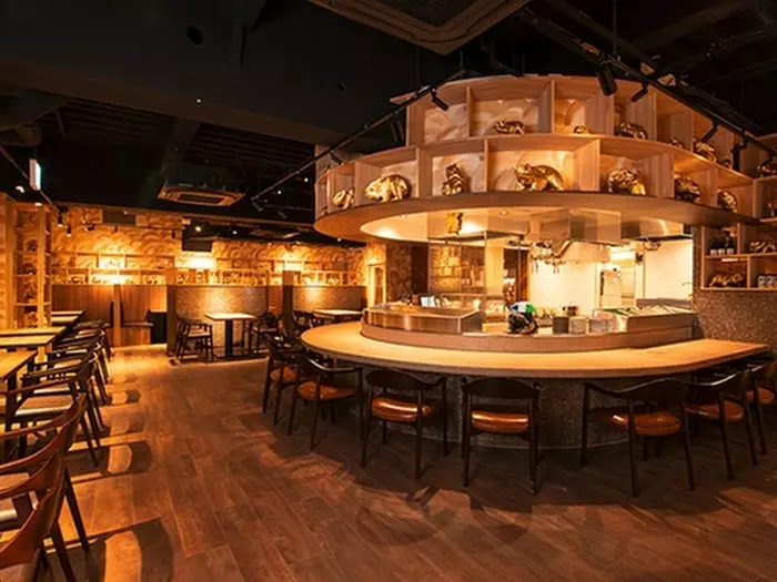 西武新宿駅より徒歩3分、歌舞伎町に位置するビアホール。「東京で一番愛される北海道レストラン」をテーマに、北海道ならではの逸品が楽しめます。木を基調とした落ち着きのある空間には1,000個もの木彫りの熊が並んでいて、テーマパークのように「隠れ熊」を見つける楽しみも。