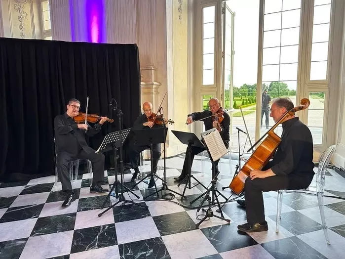 庭でのカクテル・パーティから室内演奏を聴きながらのデザートまで、優雅なディナーにわれわれもここちよくなるのですが、日本でこれをやれる場所ってどこになるんだろう、と考えてしまいました。