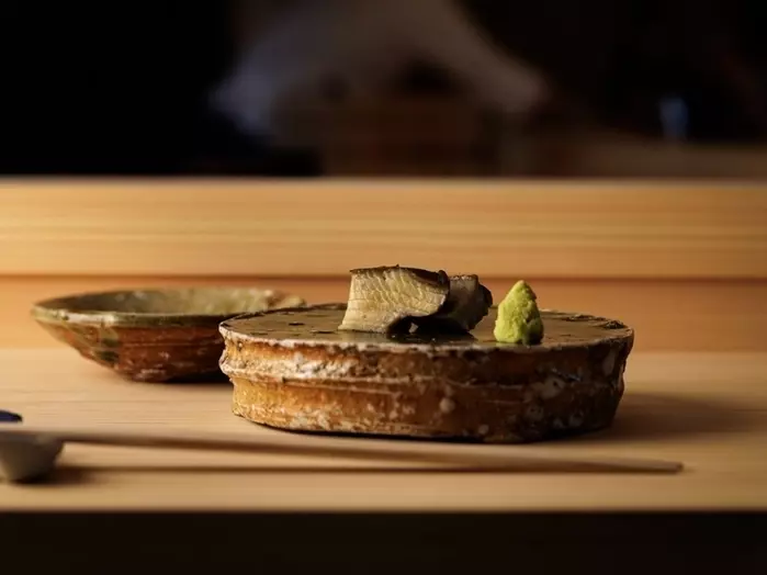 船内は、洗練された意匠とともにわずか8席のみという贅沢なつくり。そして、料理は銀座の名店でミシュラン一つ星を誇る【鮨 むらやま】が監修。豊洲の老舗仲卸「石司」から仕入れる天然の生本まぐろを筆頭に、江戸前の旬魚を使用した握りやつまみが供されます。