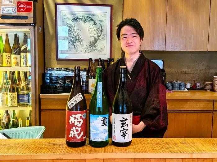 私服でも着物を嗜んでいるという二代目店主の田中さん。夏にはキレのある爽やかな日本酒、冬には燗酒……など、時季に合わせた提案も
