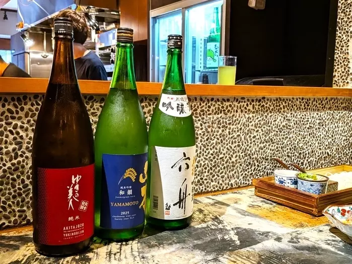 ドリンクにもこだわりがあり、日本酒は「山本」など秋田を代表する銘酒から地元で親しまれる希少な一本まで取り揃えられています。またサワーの中にはごぼうを漬け込んだオリジナルの『野菜ごぼうサワー』も。野菜料理や魚介を活かした一品料理との相性もよく、訪れるたびに食と酒の新しい組み合わせに出合えます。
