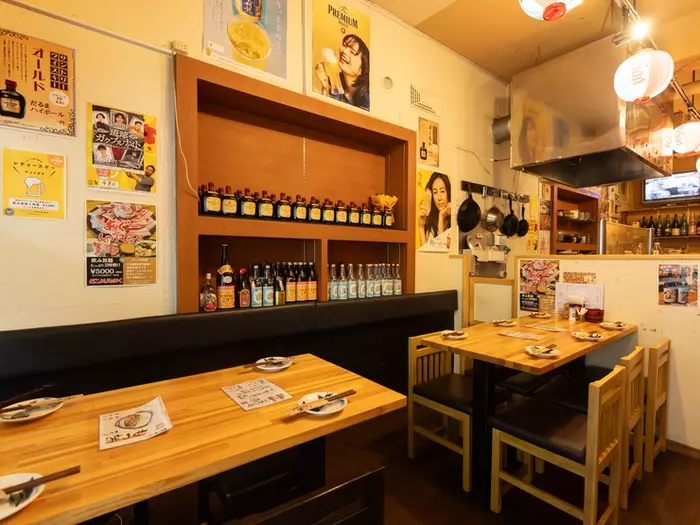 賑やかな国際通りにほど近い住宅街にあるお店は、昭和レトロな趣が漂う大衆的な空間になっています。カウンター席は、大将たちとの会話を楽しんだり、気軽に一杯飲んだりできる、思い思いの楽しみ方が可能。テーブル席は、友人や家族とゆっくり過ごせます。深夜3時まで営業しているので、締めの一軒にも最適です。